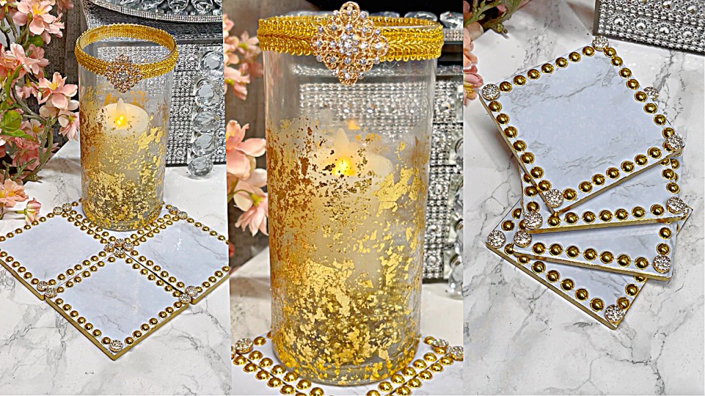 For the first time I used Gold Foil to create glamour and texture on a Dollar Tree vase. The results were